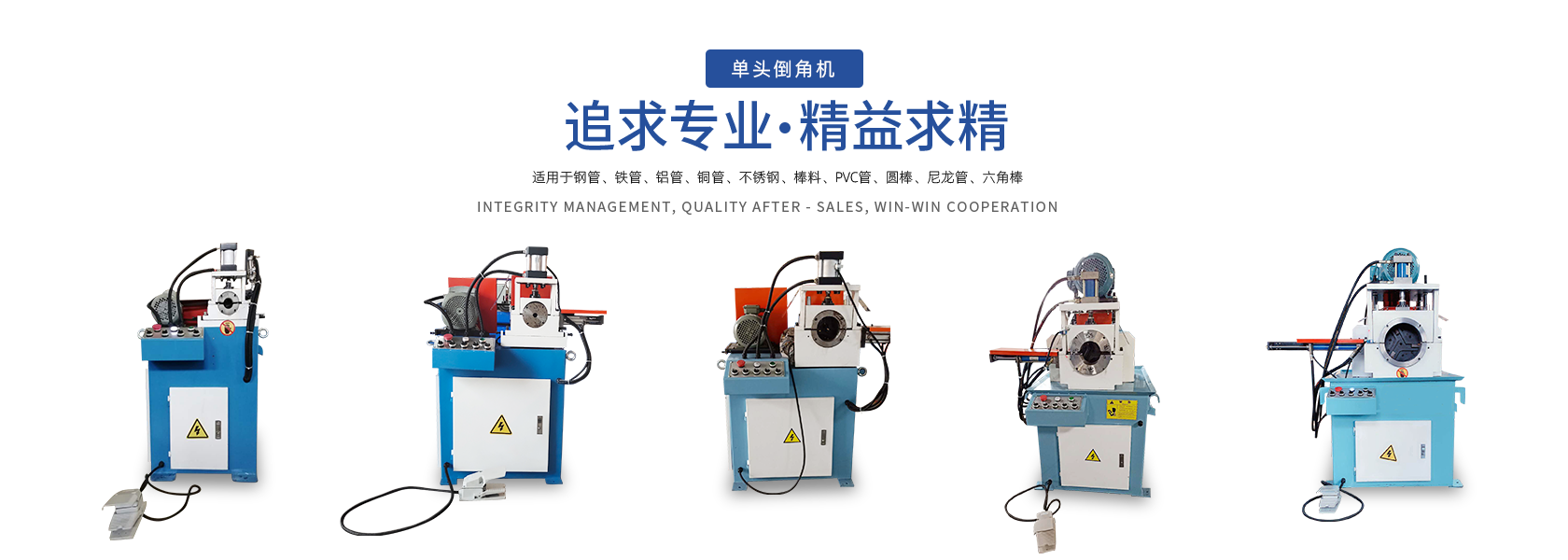 公司目前專注于研發(fā)、制造、生產(chǎn)各類優(yōu)質(zhì)全自動倒角機,現(xiàn)開發(fā)生產(chǎn)的主要產(chǎn)品有:精密雙頭倒角機、氣動雙頭倒角機、液壓雙頭倒角機、金屬圓管圓棒倒角機、端面加工倒角機以及單頭液壓倒角機等等。為汽車、摩托車、體育健身器材、鋼管家具、旅游休閑用品、水暖衛(wèi)浴等行業(yè)的金屬管制品的加工提供了完美的機械設(shè)備。